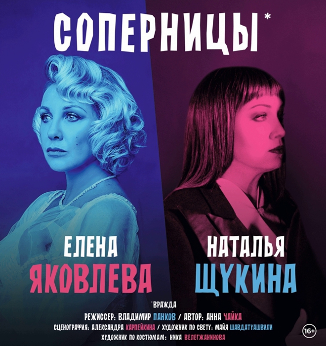 Действие спектакля «Соперницы» происходит параллельно в двух мирах: мир реальный и съемочный павильон. Кинотриллер, съемки которого идут в присутствии зрителей, причудливо переплетается с существованием в жизни. И не всегда этот переход четко обозначен.